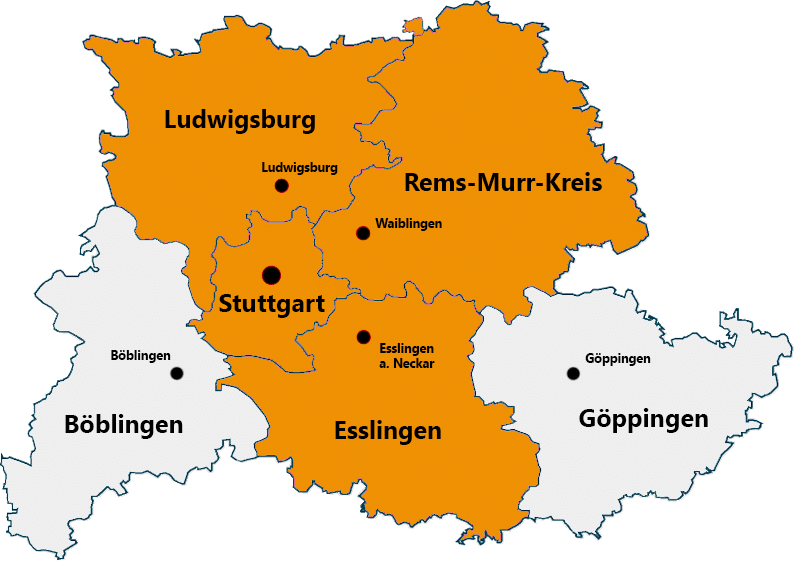 Mit unserem eigenen Serviceteam aus IT-Spezialisten betreuen wir Ihre IT-Infrastruktur reaktionsschnell und zuverlässig im Raum Stuttgart und Umgebung. Zu unserem Einzugsgebiet gehören neben unserem IT-Service in Stuttgart die Landkreise Esslingen und Ludwigsburg, sowie der gesamte Rems-Murr-Kreis.